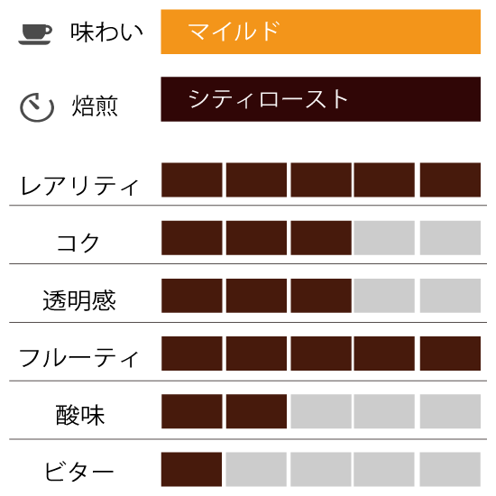 ゲイシャに次ぐ華やかな香りが特徴です。ベリー系の風味で、ダージリンのような深い味わい。フルーティーで爽やかな飲み口で、コクと透明感が絶妙なバランスを奏でます。まろやかで心地よい余韻が後引く逸品です。